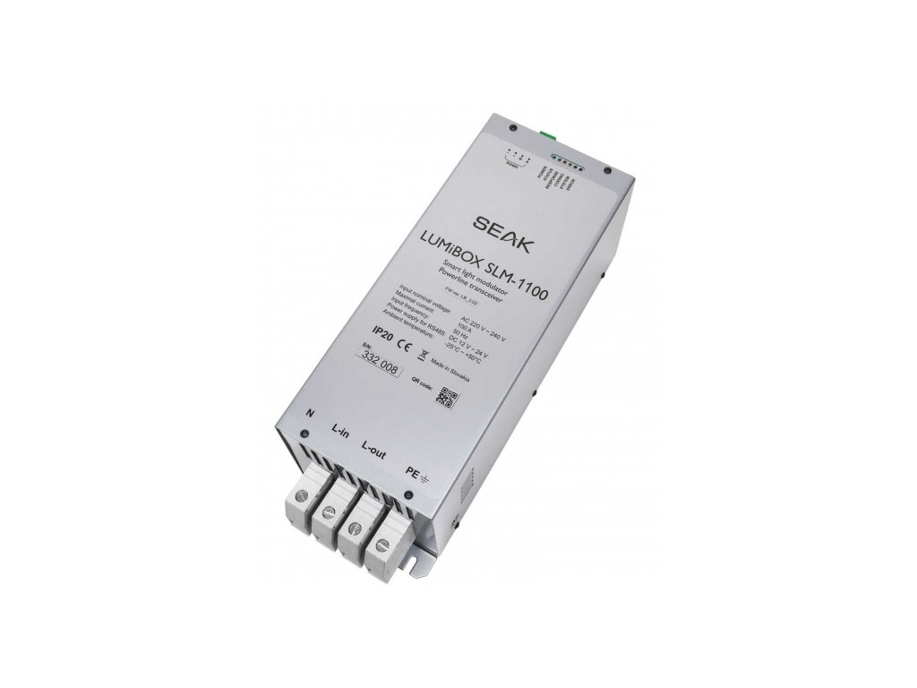 Modulačná jednotka LUMiBOX SLM-1100 (Smart Light modulátor) odovzdáva riadiace príkazy prijaté od riadiacej jednotky cez komunikačný protokol RS485 prostredníctvom rozvodov elektrickej energie na svetelné zdroje s inštalovanými modulmi.