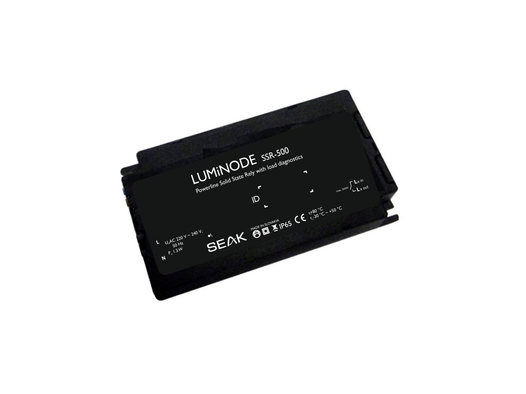 LUMiNODE SSR-500 zopne relé na základe príkazu, ktoré prijíma cez existujúce elektrické vedenie. Detekuje aj chybu lampy na základe špecifikovanej meranej tolerancie vybraných parametrov (prúd, účinník, ...). LUMiNODE SSR-500 prijíma príkazy cez fázu L a zopína vo fáze Lx. Lx je možné pripojiť k L (ak chcete prepnúť na rovnakú fázu, ktorá sa používa na komunikáciu), alebo môžete pripojiť aj na ďalšie fázy (Luminodes sú galvanicky oddelené).